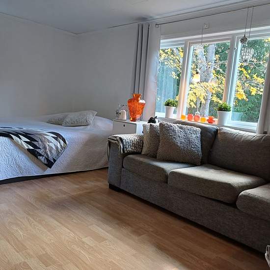This charming summer cottage of 48 square meters is located in a quiet area with a fantastic view of the forest from the terrace. The cottage is conveniently close to a bus stop, making it easy to get to Slussen in only about 30 minutes by direct bus. Gustavsberg town center can be reached in 15 minutes by bus, where you will find a wide range of services and amenities. About 1.5 kilometers away is Brunn center, which offers a school, sports field, grocery store, café, pizzeria and petrol station. There are walking and cycling paths that ma...