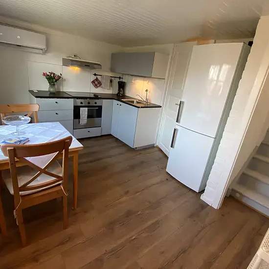 Beskrivning Fristående hus i närheten till Kalmar. Huset är ca 30 kvadratmeter och innehåller kök och toalett på bottenvåningen. En trappa leder upp till en garderob och ett sovrum med skrivplats. I badrummet finns tvättmaskin och golvvärme. Ca 10 minuters bilresa till centrala Kalmar. Rökning ej tillåtet. Fullständig köksutrustning, tvättmaskin, kyl och frys, mikrovågsugn, ugn.