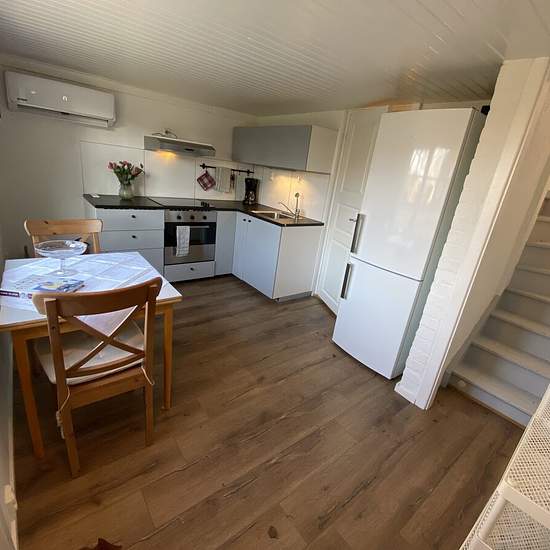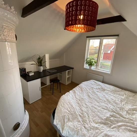 Fristående hus i närheten till Kalmar. Huset är ca 30 kvadratmeter och innehåller kök och toalett på bottenvåningen. En trappa leder upp till en garderob och ett sovrum med skrivplats. I badrummet finns tvättmaskin och golvvärme. Ca 10 minuters bilresa till centrala Kalmar. Rökning ej tillåtet. Fullständig köksutrustning, tvättmaskin, kyl och frys, mikrovågsugn, ugn. Serviceavgift för hyresgäst: 356