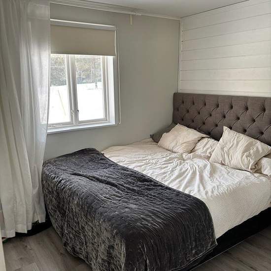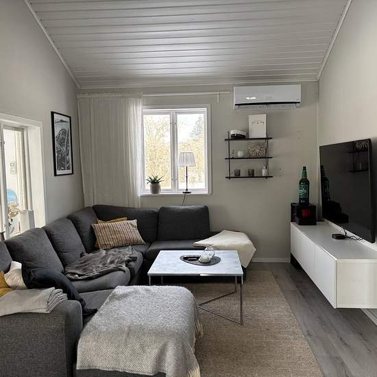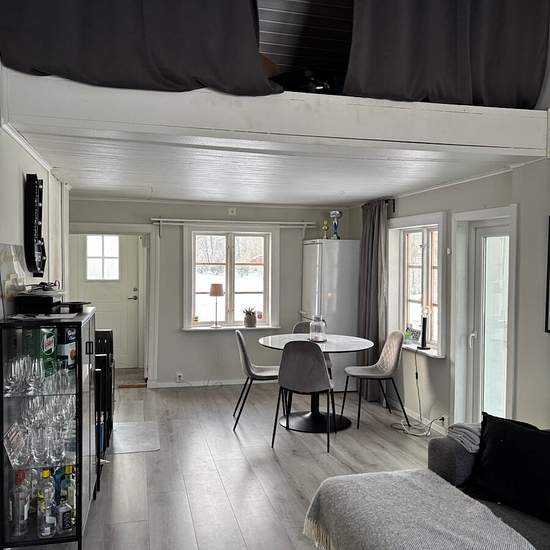 Cozy cottage on our plot for rent, approx. 50 square meters. Glazed sunroom. Deck. No lawn or other green spaces. Bus service: 124. We are looking for a pleasant and responsible tenant with stable finances. Cold rent: 7,000 SEK. Parking and waste collection are included. Electricity not included. Heating: air-source heat pump. Service fee for tenant: 416 SEK