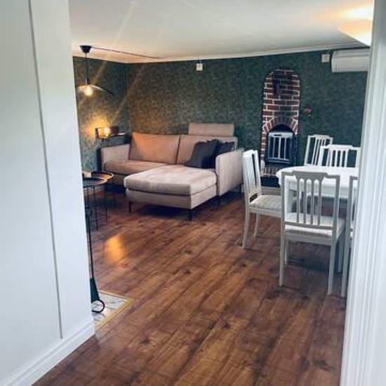 We are now renting out our small cottage located on our plot in Vesene. The cottage is perfect for 2 people. On the ground floor there is an entrance, living room, toilet and laundry room. On the second floor there is a sleeping loft divided into 2 rooms. Cozy, renovated in 2023 to a high standard. Service fee for tenant: 371