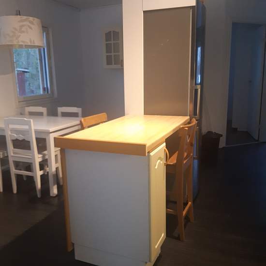 En mycket fin bostad i nyskick (varit uthyrd ett år åt en person med mycket höga krav på en allergi fri miljö , dvs inga parfym , djur ,rök eller ,damm förekomster, ) så ska det vara även fortsättningsvis , så skorna lämnas vid entrén , bara en person i hushållet i första hand , bilplats finns , utemiljön är lite stökig för närvarande pga viss byggnation , men huset har en runtomgående stor altan , som kommer att förses med en grillplats Serviceavgift för hyresgäst: 396