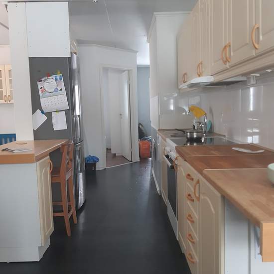 En mycket fin bostad i nyskick (varit uthyrd ett år åt en person med mycket höga krav på en allergi fri miljö , dvs inga parfym , djur ,rök eller ,damm förekomster, ) så ska det vara även fortsättningsvis , så skorna lämnas vid entrén , bara en person i hushållet i första hand , bilplats finns , utemiljön är lite stökig för närvarande pga viss byggnation , men huset har en runtomgående stor altan , som kommer att förses med en grillplats Serviceavgift för hyresgäst: 396