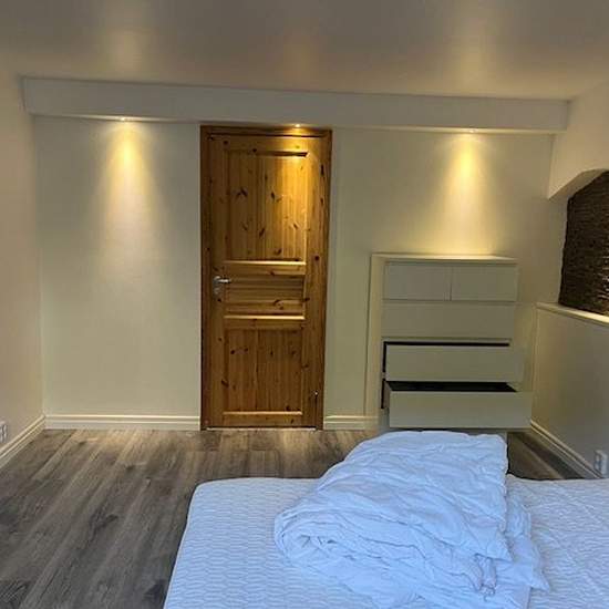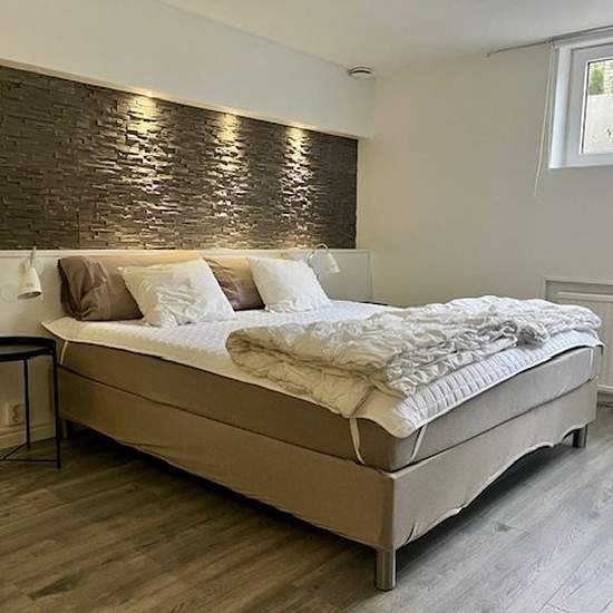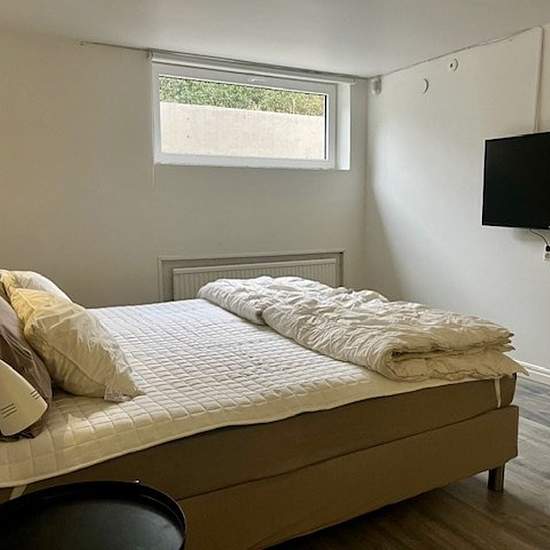Private basement apartment: 2 rooms + bathroom & kitchenette. Separate entrance to the driveway of the house where you can park for free. You will have your own: - Bedroom with smart TV - Living room - Bathroom with shower (renovated in 2021) - Kitchenette (no oven or dishwasher) and a large room between the entrance and living room with many closets. Size: 100 square meters with a ceiling height of 219 cm. You live close to a green area (Husie mosse) on the outskirts, but you can get to the city centre in 20 minutes with bus 5 (frequent ...