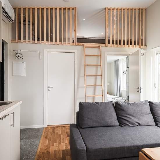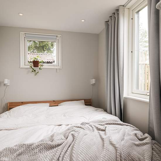 Close to everything you will find this privately situated, spacious and newly built Attefall house. All conveniences are provided, such as a fully equipped kitchen, generous living areas and a spacious patio. The cottage has its own driveway and two roomy parking spaces. The cottage includes a bedroom, bathroom, loft and a living room with kitchen. The kitchen has all necessities such as a dishwasher, cutlery, spatulas, knives, frying pans, etc. Fully tiled and tastefully furnished bathroom with towel warmer, washing machine and underfloo...
