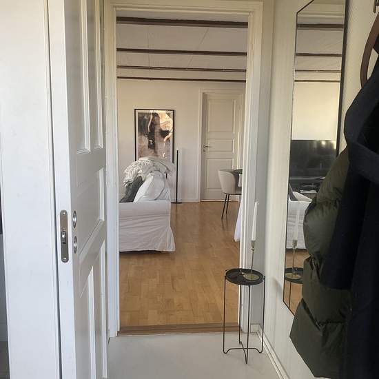 Apartment on the upper floor of a villa with sea view. Close to a bus stop. Close to the beach. Open-plan living room and kitchen, and one bedroom. New fully tiled bathroom with underfloor heating and washing machine/dryer, storage room and parking space. Water, garbage collection and fiber are included in the rent. Rent SEK 9,100/month. Electricity is extra. One month's deposit. No payment defaults. Service fee for tenant: SEK 553