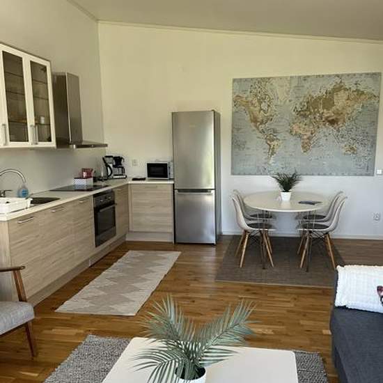 Tastefully decorated guesthouse adjacent to a villa in the attractive Trummenäs area. Newly built in 2019. Fully furnished, approximately 60 sqm. Private entrance. The living room has an open floor plan with the kitchen. 43-inch TV + Chromecast. Spacious bathroom with underfloor heating. Own washing machine. Sleeping arrangements for 5 people: Bedroom with a double bed (180 cm). In the living room, a sofa bed that accommodates 2 people. Air mattress (157 x 203 x 40 cm) with a built-in electric pump that quickly and easily inflates and defl...
