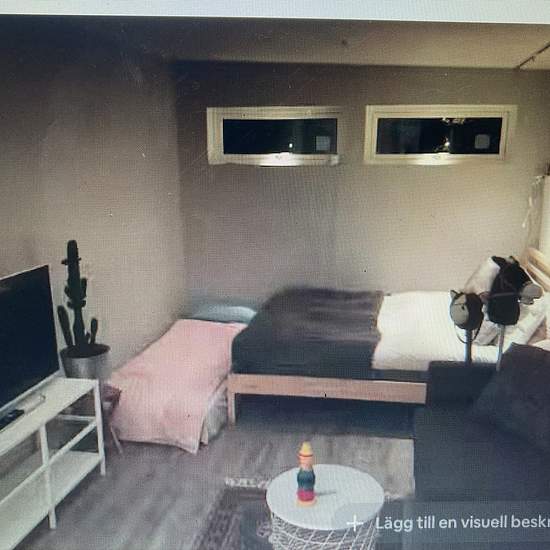 A pleasant and very well-planned apartment with its own patio that gets sun most of the day. You get an "own house" feeling in this secluded part of a large atrium house, and it is located in a very quiet and safe row-house area, 15 minutes from the city's pulse. A reliable and experienced landlord who does not have to sign the contract through this site, which makes the monthly cost SEK 760 lower if you can provide a deposit and an advance rent. The small room can be used as an office, guest room, or child's room. The sofa bed in the livi...