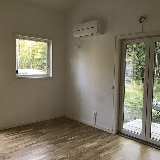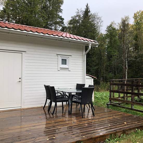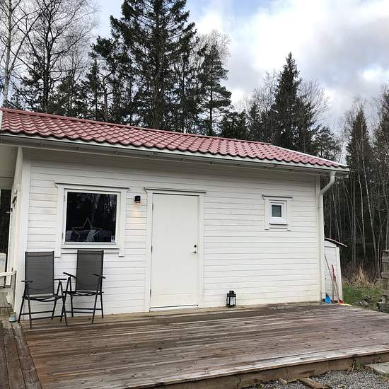 The house is located in Länna and sits by the forest. 35 + 12 square meters loft. A small bedroom; kitchen and living room in one. There is a veranda of about 25 square meters. A new outdoor storage of 5 square meters was built this year. The house was built in 2018. It is about 20 minutes from the commuter train and the bus stop, so a car is preferred. Parking, electricity, water, waste disposal, and fiber broadband from Telia are included in the rent. It is a 5-minute walk to Lake Magelungen and 10 minutes to the Ågesta exercise trails. Lo...