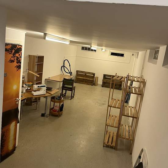 There is a unit next to the house for rent. Available from March. One room by the entrance and a basement room. Toilet available. Service fee for tenant: 272.