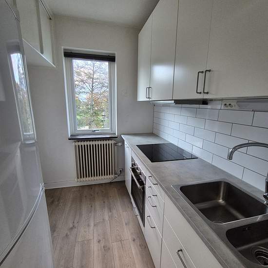 2-room apartment with a view of the Tidan. The kitchen is equipped with white cabinets, a refrigerator, freezer, and stove. Renovated in 2020. The walls are light-colored. Laundry room in the basement. The apartment is located on the second floor. Fiber connection is available; you need your own subscription. Note: The photos in this listing are example images but are intended to represent a comparable condition. Please submit your expression of interest via HomeQ or contact us to book a viewing! Locustella Fastigheter 07 EMAIL