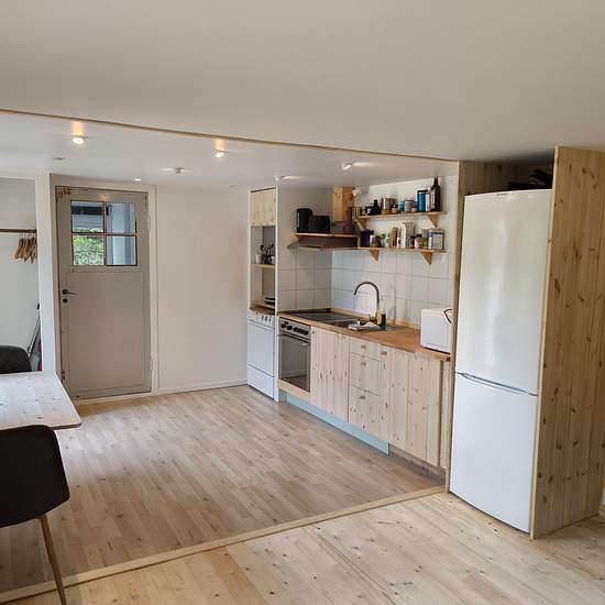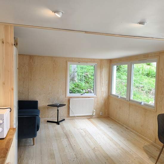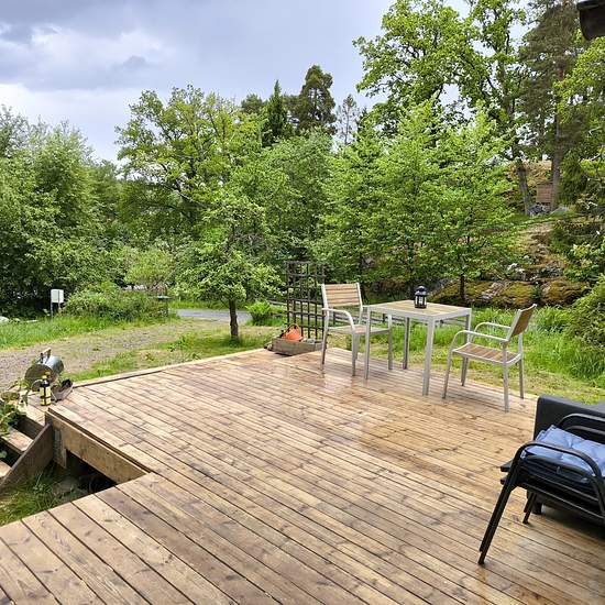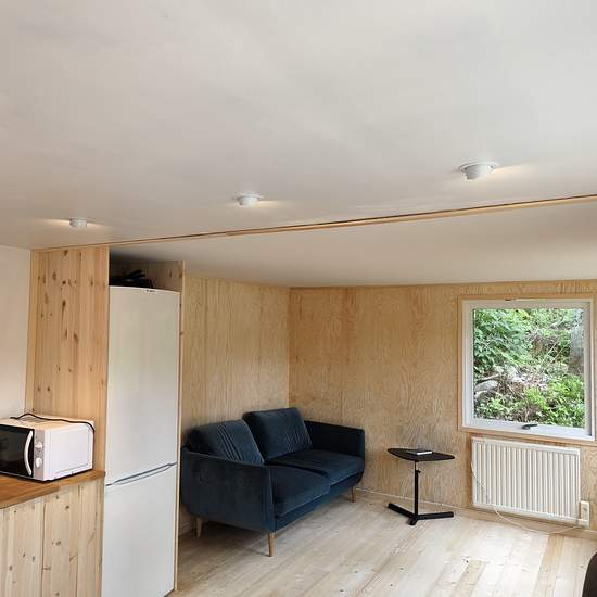 Nice cottage suitable for one person or a couple. Garden with fruit trees. 8 minutes to the bus, 1 minute to the sea below, and a glimpse of the sea from the house. Private driveway and parking for a car or bicycle. Waste collection and internet (fiber) included. Electricity extra. Quiet area in the archipelago, 30 minutes to central Stockholm by car; by bus 45 minutes to Gullmarsplan. The house is on a shared lot but is situated separately so it feels like its own plot. Service fee for tenant: 490