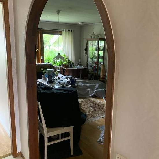 Nice 2-room apartment in a semi-detached house. Private laundry room in the apartment, 68 m², at the end of the road, bordering the forest. Two outdoor patios. Two unheated storage rooms plus attic storage. Carport and driveway parking. Cold rent. Separate electricity subscription.