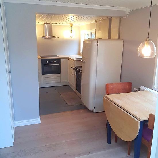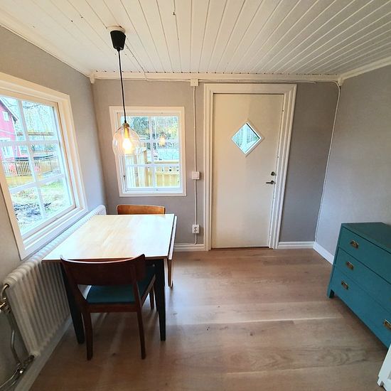 A private cottage of about 25 square meters in a residential area approximately 5 km from Vallentuna center. The cottage dates back to the 1920s but has been newly renovated (end of 2019). The hallway has solid parquet flooring and the rest has painted wooden floors. New kitchen, there is also an original wood stove approved for burning. The bathroom is fully tiled with a washing machine and shower. New hot water and heating system installed. Outside the cottage, there is a private patio separated from the rest of the garden by a newly plan...