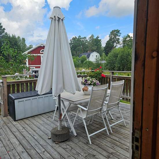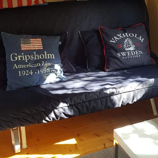 The cabin is rented out weekly, 6500 SEK/week. The cabin on Resarö is 36 sqm with an open ridge, which creates an airy and spacious feeling. It consists of two rooms with a total of four beds, and there is also an extra bed available. A baby crib can be arranged upon request. In the living room – there is a 160 cm sofa bed suitable for two people. There is also a coffee table with two armchairs as well as a round, extendable dining table with room for up to six people. Storage is provided in a wardrobe. Large wooden deck/patio with dining ...