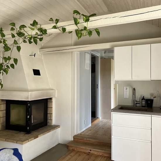 Rent out our little gem. The house is newly renovated and in very good condition, located right by the sea. If you are interested in nature, swimming, and tranquility, this is perfect for you. The cabin is on our property where we live, but still secluded. We rent it out furnished and fully equipped, and we take great care of our belongings in the house. A maximum of 2 people can stay here, and we only accept considerate individuals who respect our home. No smoking. Service fee for the tenant: 346.