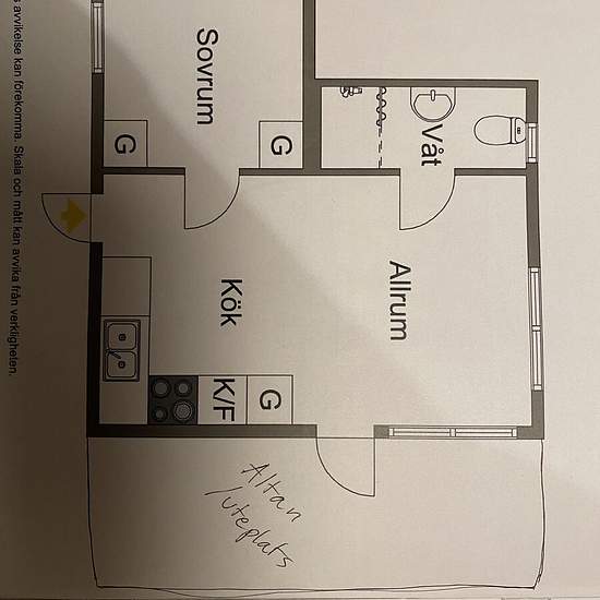 Hello! We rent out our summer place during the autumn, winter and spring months. It is a 28 sqm apartment that is part of a larger cottage with a neighboring apartment. The apartment is completely separated from the neighbor with its own entrance and its own large patio. When you enter through the front door there is a small hall and then you come directly into the open-plan layout that consists of a kitchen with a dining table and a living room. The kitchen has a fridge/freezer and an oven/stove that were purchased only about a year ago (ol...