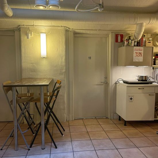 A bed in a shared six-bed room in a downtown hostel If you don't mind sharing a room and you like to stay cheaply in a vibrant hostel in central Stockholm, then this is for you. You share the kitchen, bathrooms and lounge with the other guests, and you have a private locker for your belongings. In return for the cheap accommodation, the owner expects you to report to him anything out of the ordinary if something occurs while you are in the hostel, but the owner is not. Service fee for tenant: 59
