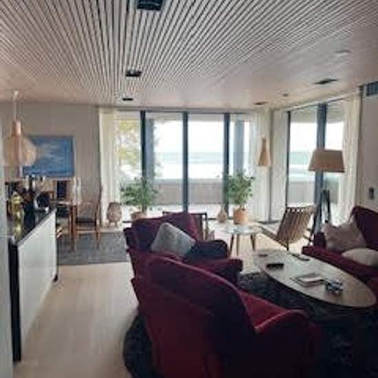 Toppmodern lgh med havsutsikt 50m norr om Åhusbryggan Lägenhetshus med 9 lgh , Hotell Åhus Seasides spaträdgård som närmsta granne. Lägenheten ligger närmast havet på vån 3 Fantastisk 3m bred överbyggd balkong om ca 37m2 Värme o vatten ingår i hyran, bredband o hush.el tillkommer. Serviceavgift för hyresgäst: 872