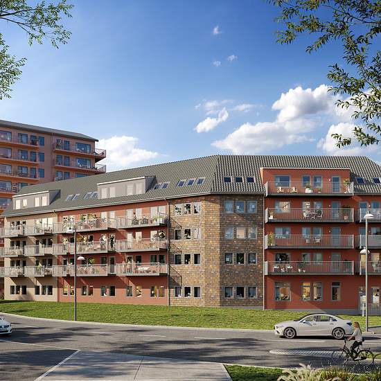 We are now expanding our portfolio with attractive newly built rental apartments in Älvängen at Gustavas Plats outside Gothenburg. All apartments have a high standard. The kitchen is a white quality kitchen from Vedum, of course equipped with a dishwasher and a built-in microwave. The kitchen has a grey-beige stone countertop which also serves as the splashback up the wall adjacent to the countertop. In the fully tiled bathroom there is a washing machine and a tumble dryer. The photos were taken in an apartment with the same choice of mate...