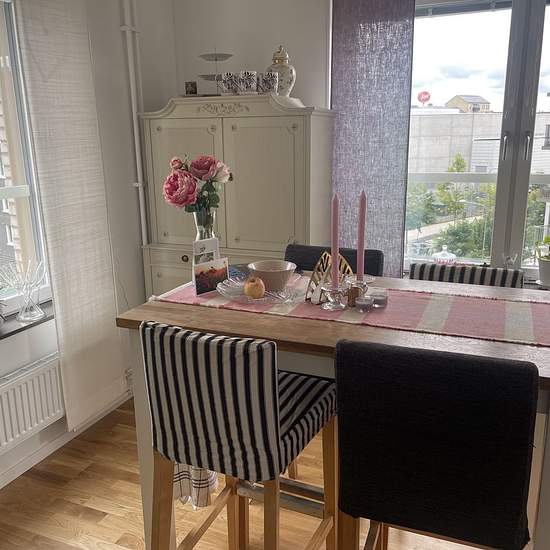 Möblerad 3 på ca 80 kvm i Älvsjö – uthyres från 1 juni (är öppen för tidigare inflyttning). Välkommen till en ljus och luftig trea med balkong i nybyggda Älvsjöstaden. Lägenheten byggdes 2023 och ligger på våning 4 i ett modernt hus med två hissar och tvättstuga på bottenplan. # Planlösning: Lägenheten har en öppen planlösning mellan kök och vardagsrum. Det finns ett stort sovrum med walk-in closet och egen wc, samt ett mindre rum som idag används som hobby-/träningsrum. Om hyresgästen önskar använda det som sovrum kan en säng ordnas inför...