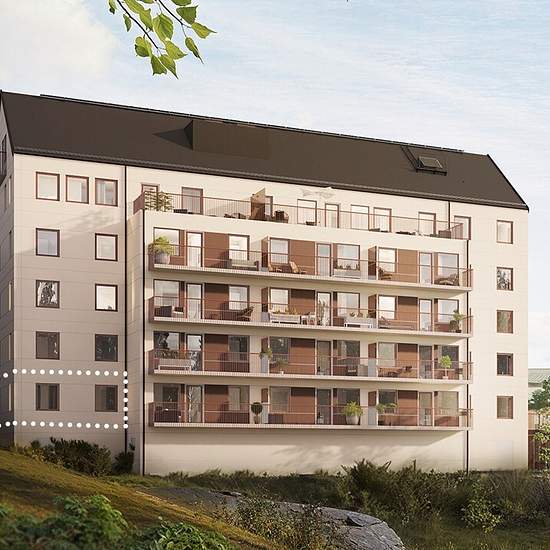Här erbjuds en fin, välplanerad och nyproducerad hyresrätt med uteplats i sydväst på 9 kvm. På bilderna och planritningen kan du se i viket hus, samt vart i huset lägenheten är belägen. Filmen som visas för lägenheten är en film från en likadan lägenhet med samma planlösning, men i ett annat hus och ev. annat våningsplan. Köket har luckor och lådor i stilrent vitt och är utrustad med diskmaskin, häll, moderna vitvaror, stänkskydd i vitt kakel och plats för mikrovågsugn. Badrummet har klinker i svart, kakel i vitt och badrumsskåp med belysn...