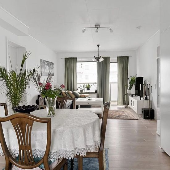 The Apartment: The apartment is a 3-room and kitchen, of which 2 are bedrooms. It has an open floor plan, continuous laminate flooring, and white painted walls. The bathroom has fully tiled walls and a plastic mat floor. The apartment is rented out long-term (one year at a time), unfurnished. Pet-free and smoke-free apartment. Home insurance is required (including accidental damage insurance). The Area: This is the apartment for you who want everything within walking distance. These newly built apartments from 2019 offer a well-planned...
