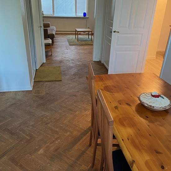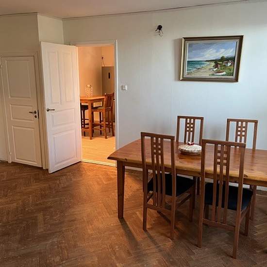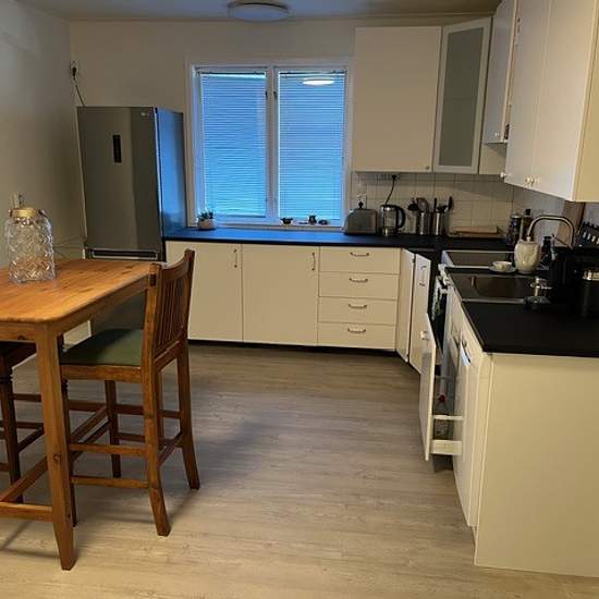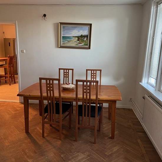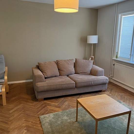 A three-room apartment on the ground floor with a large living room and two bedrooms. A pleasant location close to shops and the bus station. Plenty of free parking directly opposite the apartment. Heating is included. Electricity is not included. Hot and cold water and wastewater are billed based on actual consumption every three months. Within walking and cycling distance to the school via the bike path behind the apartment. Service fee for tenant: 416