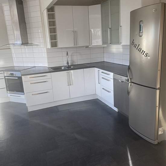 Bodafors is a small community about 15 km from Nässjö and 45 km from Jönköping. School, preschool, grades 1–9. A shop, pizzeria, kiosk, etc. are available in the community. Household electricity is extra. Heating is included. Fiber is installed. Good connections by train and bus. Note: There are currently two 3-room apartments available which can easily be converted back into the original apartment, which would then be a 7-room-and-kitchen apartment with four large bedrooms. Approx. 190 m2 Service fee for tenant: 404