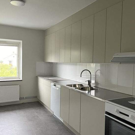 Lägenheten är under renovering sommaren år 2024. Nya golvmaterial, parkett slipas i vardagsrum, nykaklat badrum och nytt vitt kök med diskmaskin. Målade vägggar i äggskalsvitt med en gråton i. Sjävdoserade tvättmskiner i tvättstugan, solceller på tak. Förberett i badrum för ev tvättmaskin. Vatten och el, samt bredband tillkommer, och betalas av Dig som hyresgäst, och ett förråd finns på vind som ingår. Hyran för år 2025 är 11 265 kr per månad. Vi erbjuder nu en rabatt på 1 700 kr per månad under 5 år, vilket innebär att du endast betalar 9 5...