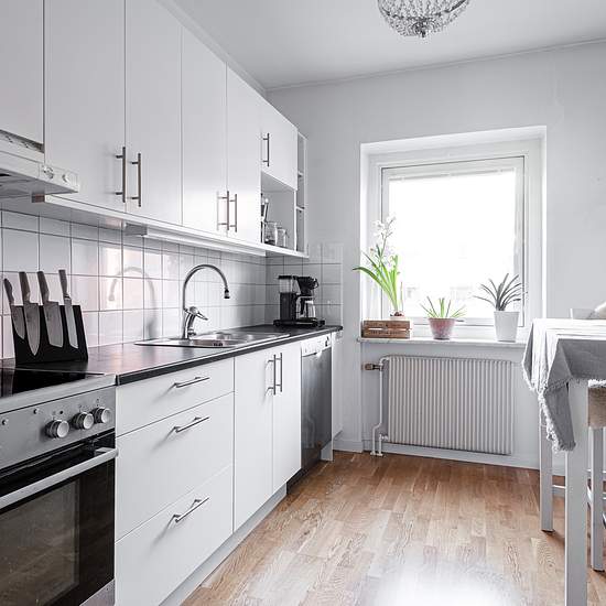 Välkommen till en 3:a på andra våning i centrala borås med två balkonger. OM LÄGENHETEN Lägenheten har två balkong en i norr och en i söderläge. Lägenheten har ett fint ekparkettgolv och ljusa väggar som bidrar till en modern och inbjudande känsla. Det finns goda förvaringsmöjligheter då flertalet garderober finns. KÖKET Köket är modernt och stilrent med vit skåpsinredning och en mörk bänkskiva. I köket finns det gott om utrymme för matlagning och förvaring, kyl/frys, fläkt och hällspis. Diskmaskin finns i lägenheten men tillhör nuvarande ...