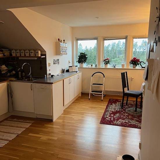 3-room apartment (3 rooms and a kitchen) at Tollstorpsgatan 1, Borås: 2 bedrooms and an open modern floor plan for the kitchen/living room, airing balcony off the master bedroom and a balcony off the living room, fully tiled bathroom, guest toilet, small laundry room with its own washing machine, separate subscriptions for electricity and broadband.