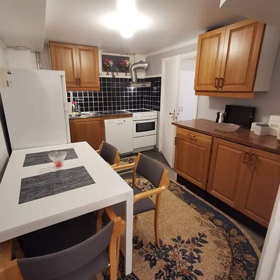 Hi! We are renting out the lower floor of the house (basement), with two bedrooms, a large living room, bathroom, laundry room, kitchen, and a private entrance. The rent includes electricity, water, fiber Wi‑Fi, one parking space, and is partially furnished. Available from January 1. It is located in the Gylle area. It is suitable for a student or a seasonal worker. Service fee for tenant: 420.