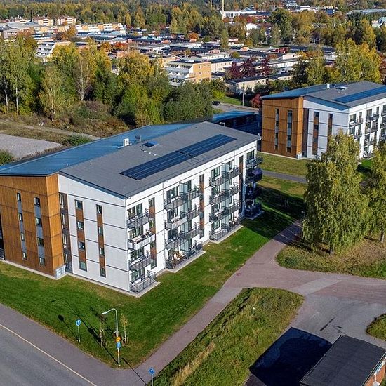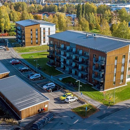About the apartments Newly built in 2022 with bright modern apartments in an open floor plan. The houses have beautiful wooden facades and all apartments have a balcony with space for a table and chairs. Modern kitchens with gray cabinet doors and black countertops. All apartments have a dishwasher and a washing machine with combined washing and drying functions. The entrances have access control systems and mailboxes in the stairwell. There is an elevator. There are lockable indoor bicycle storage rooms and bicycle parking in front of each ...