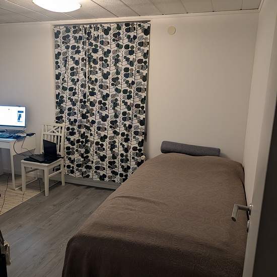 Hej. Vi hyr ut hela nedanvåning av vår Villa ( ni bor ensamma där) Full möblerat Stor vardagsrum med soffa, hyllor, köksbord, stolar Kök full utrustat, helt nya vitvaror, installerade bänk diskmaskin under vasken Finns allt, möblerat Sovrum med en 1,20 säng och en dubbelsoffa man kan drar ut Skrivbord Badrum - helt ny dusch och möbler, kalat och målat nytt. Terrassen (Uterrum) med Köksbord - Lounge på Bilen plockar jag undan - det är en investement:) Stor trädgård och uterrum som tillhör Ni klipper gräset regelbundet - och tar hand om det...