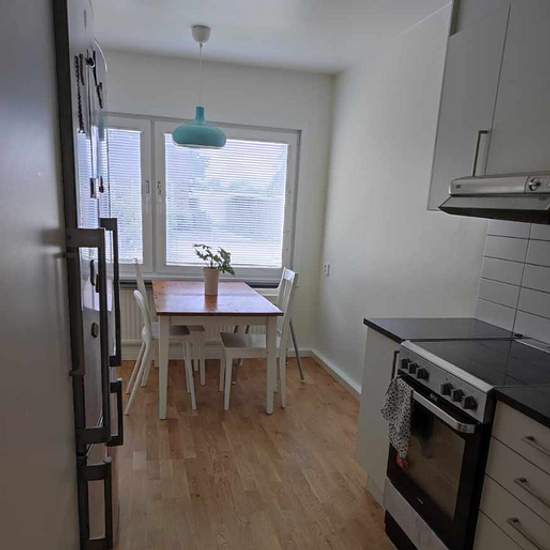 Uthyres från 20 July. Lägenheten är på bottenplan med stor trädgård. Ca 1 minut från busshållplatsen för att komma till pendeltågsstationen. Ligger 25 minuter boet från stan med pendeltåg, uthyres möblerad. Lägenheten är stor och rymlig, passar perfekt för en barnfamilj. Tillgång till diskmaskin och tvättmaskin. Hyra:12500 Serviceavgift för hyresgäst: 773
