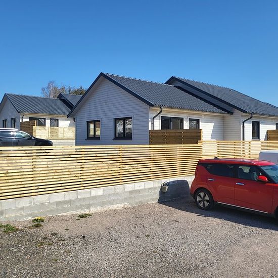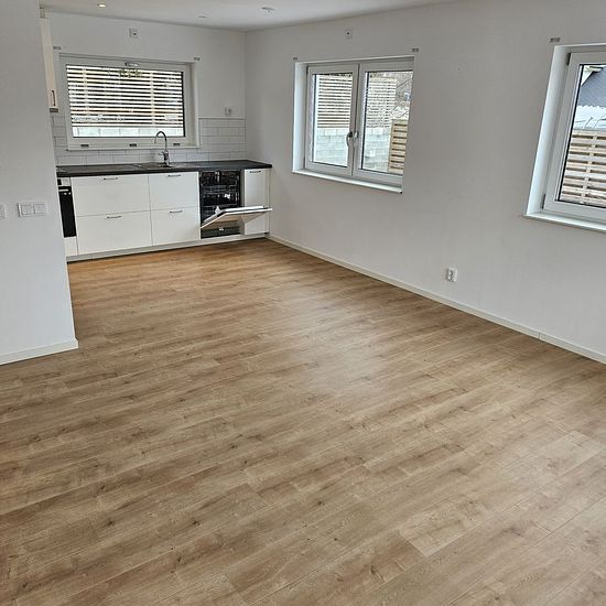 Very nice ground-floor apartment built in 2023 in a good and quiet location. Open floor plan with open kitchen and living room. Underfloor heating everywhere for best comfort. Private patio at the back. The apartment size is about 78 sqm. CALL US TODAY FOR MORE INFO! PHONE: 77 Floor plan Open floor plan in kitchen and living room.