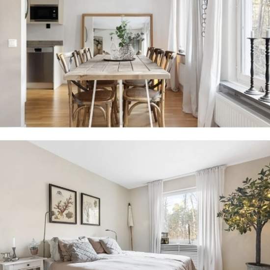 Welcome to my oasis with nature right outside the window. Please note the SHORT RENTAL PERIOD before proceeding and book a viewing. This is a corner apartment and is incredibly nice and fresh, with tasteful and simple décor. In addition, you are only a few steps from Lake Mälaren and 800 m from the subway. A bus stop is right outside. The kitchen is newly renovated and the large bathroom has space for both a washing machine and a dryer. Large hallway with access to an incredibly well-planned walk-in closet. The large bedroom has wall-to-wall...