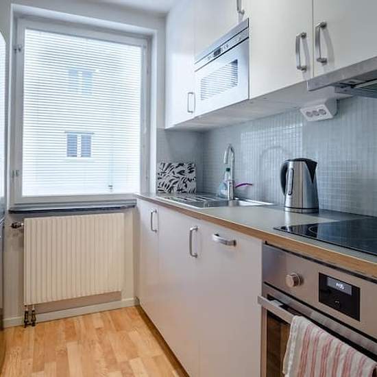 Bright, newly renovated 3-room apartment in Traneberg (Alvik). Fully equipped kitchen, living room with dining area, hall, bathroom, closets, a larger bedroom with a double bed and a smaller bedroom with a single bed. The apartment is fully furnished and ready to move in. Quiet location, good services and excellent transport connections, a few minutes' walk to Alvik station with subway, tram and buses. Service fee for tenant: 1064