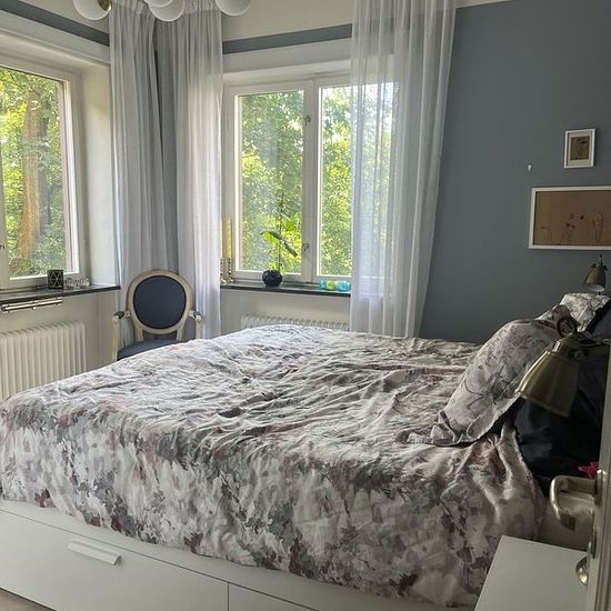 A three-room apartment of 71 sqm is available for rent as we will be abroad over the winter and then move. We initially rent out the apartment for one year, but if nothing unexpected happens there is a good chance for an extension. The apartment is rented furnished. Two bedrooms, one with a 180 cm bed and a children's room with a 120 cm bed. Here you can accommodate three to four people. Tranberg is a cozy area and the apartment is located right next to the subway. At Alviks torg, all amenities are available; cafes, restaurants, pharmacy a...