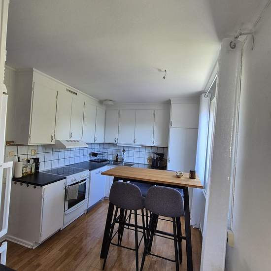 Centrally located 3-room apartment in Dalsjöfors, about 10 km outside Borås. Close to a lake and nature. 3 rooms and a kitchen — very well laid-out apartment with an extra WC. 73 m² on the second floor. No balcony or elevator. Quiet building, first-hand lease. Carport included in the rent. TV (terrestrial channels); household electricity not included. Available 2026-01-01. Close to the bus stop, 25 m away.
