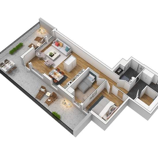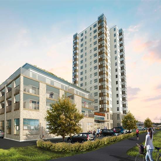 All apartments in the high-rise have a bay-windowed viewing room with views in three directions. The room is part of the living room and gives the feel of a glass-enclosed veranda, where the boundary between outdoors and indoors is blurred. At the top of the high-rise there is a communal roof terrace where you and your neighbors can relax. On the roof terrace you can rinse off in the outdoor shower while enjoying the panoramic view that stretches for miles. On the first floor is Strandhälsan, where you can take care of your body and work out...