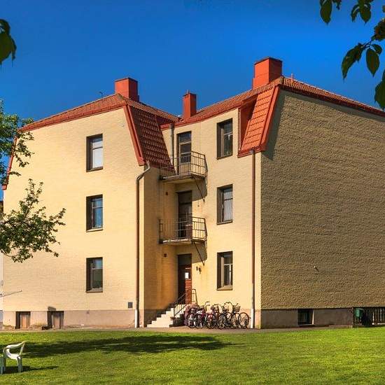 Charming apartment with wooden floors and high ceilings in a central area. Close to the transport hub and grocery store. Parking space next to the building. Stone building with a good, quiet indoor environment. Two entrances.