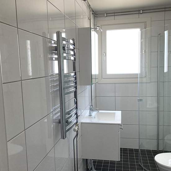 Välkommen till en renoverad 3 RoK med genomgående hög och modern standard. HALL Välkomnade hall med svart entrébeläggning, vita väggar och golv i trälaminat - lägenheten har säkerhetsdörr. KÖK Modernt kök med rostfria vitvaror, antracitgråa bänkskivor och induktionshäll. Luckorna är vita med stilrena stålhandtag. Köket är utrustat med två stycken kyl/frys, varmluftsugn, fläkt samt diskmaskin och integrerad mikrovågsugn. BADRUM Lägenheten har ett ljust helkaklat badrum utrustat med dusch, handdukstork, golvvärme, handfat med kommod samt s...