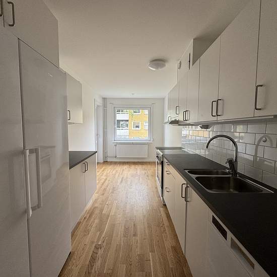 Varmt välkommen till denna nyrenoverade 3:a om 82 kvm på våning 1 (hiss finns) – en bostad som kombinerar stil, komfort och funktionalitet på bästa sätt. Här bor du i en helrenoverad lägenhet där varje detalj är genomtänkt för att skapa ett hem att trivas i. Den generösa planlösningen erbjuder ett ljust vardagsrum med utgång till en rymlig balkong med rofylld, grönskande utsikt – en perfekt plats att njuta av både morgonkaffe och sommarkvällar. Köket är både snyggt och praktiskt med gott om förvaring, generösa arbetsytor och moderna vitvaror...
