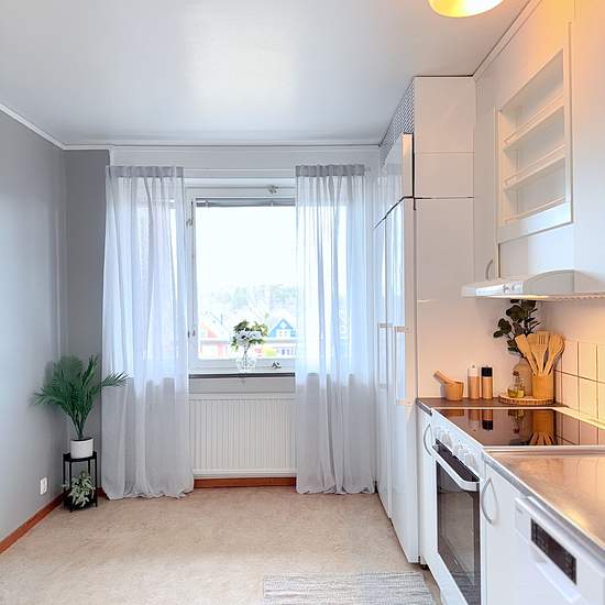 BO BRA - Rymlig insynsskyddad 3:a i barnvänligt kvarter. Välkommen till denna lägenhet med kök utrustat med nya vita luckor, vitt kakel och moderna bekvämligheter som diskmaskin och stora enheter för kyl & frys. Badrummet erbjuder ett badkar, vitt kakel och både tvättmaskin och torktumlare. I vardagsrummet njuter du av ljusa ytor, parkettgolv och fönster i väst med naturligt ljusinsläpp och uppsikt över innergårdens lekpark och grönområde. De två sovrummen bjuder in till avkoppling med ljusa väggar, bekväma förvaringsmöjligheter och balkon...