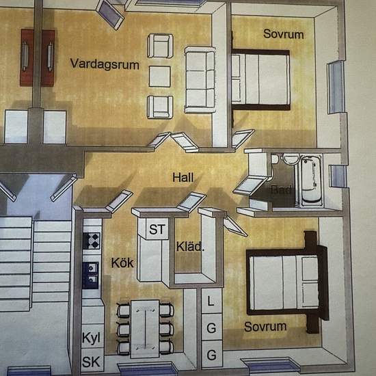 3-room apartment on the second floor with an incredible view of Storsjön and Östersund. Nice standard in the apartment with an open fireplace. It's quiet throughout the building. No dogs or children live here. 71 m2, rent 10,000 kr including Com Hem TV fee. Johan Service fee for tenant: 495