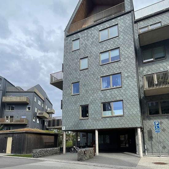 The properties were built in 2019/20 on Uggleberget in Nya Hovås, a new district that has emerged in southern Gothenburg. Here you live close to nature and the sea with every imaginable service right around the corner. The apartment has an open floor plan with oak parquet in all rooms except the hallway, which has tile, and the bathroom, which is fully tiled. The kitchen has white cabinet doors, white tiles and a stove with an induction hob. There is storage in the apartment. Non-smoking area. Parking is applied for via Parkeringstjänst i Vä...