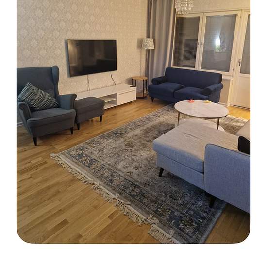 A nice 3-room apartment with modern facilities where I rent out a furnished room (approx. 12 m²). Interviews will be scheduled, and proof (documents of studies/work, income, etc.) will be required. A proper and pleasant personal chemistry is appreciated. The rent, 5,500 kr, is paid in advance on the 25th of each month and includes the furnished room (I appreciate that you have minimal belongings :-)), hot water, electricity, broadband, a shared kitchen and bathroom, and access to washer/dryer and dishwasher. Service fee for the tenant: 346
