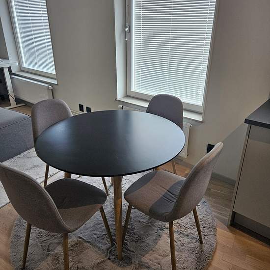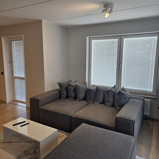 Newly built apartment on the 8th floor, a 2-minute walk to the bus stop. Rent includes the association fee and cleaning. Communication in English. Renting because I need support with the rent. Service fee for tenant: 443